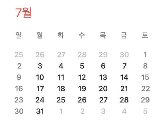 const prevMonthLastDateObject = new Date(year, month - 1, 0) // 7์ ์ด์ ๋ฌ(6์)์ ๋ง์ง๋ง ๋